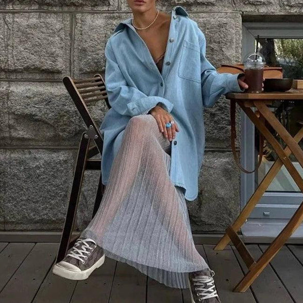 This stunning skirt features a sheer fabric that adds a touch of sophistication to any outfit. The flowing design and delicate texture enhance your ensemble, ensuring you stand out with grace and confidence. Designed to be versatile, this maxi skirt transitions seamlessly from day to night. You can dress it up for a formal event or keep it casual for a stylish day out.