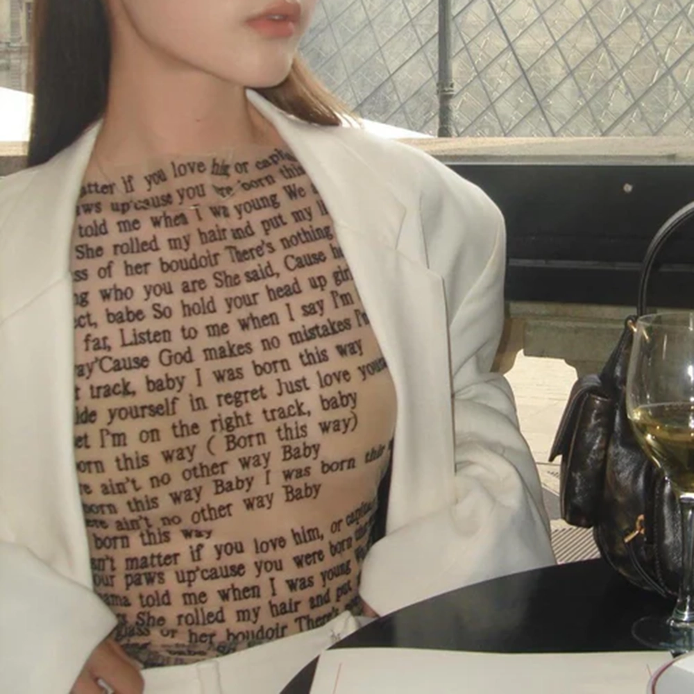 This striking piece features intricate mesh detailing that mimics tattoo art, adding a touch of edge to your look. The top comes with matching gloves, creating a unified and bold ensemble. Made from high-quality, breathable fabric, it ensures both comfort and style. This unique design is perfect for layering or wearing alone to make a statement. The Mesh Tattoo Top With Gloves combines art and fashion seamlessly.