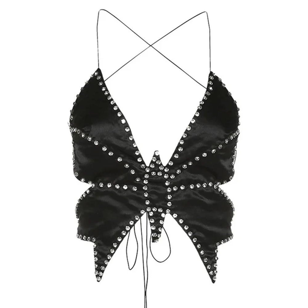 Elevate your wardrobe with our Butterfly Effect Satin Crystal Crop Top. This top features a glamorous backless design and intricate lace-up closures, adorned with sparkling crystals. The Satin Crystal Crop Top offers a chic look perfect for special events or a stylish night out. Made from luxurious satin, it drapes beautifully and fits comfortably, enhancing your silhouette. The attention to detail in the crystal embellishments adds a touch of glamour. This top’s eye-catching design and fine details make it a standout choice for any occasion. It’s a must-have for anyone looking to add elegance and sparkle to their outfit.