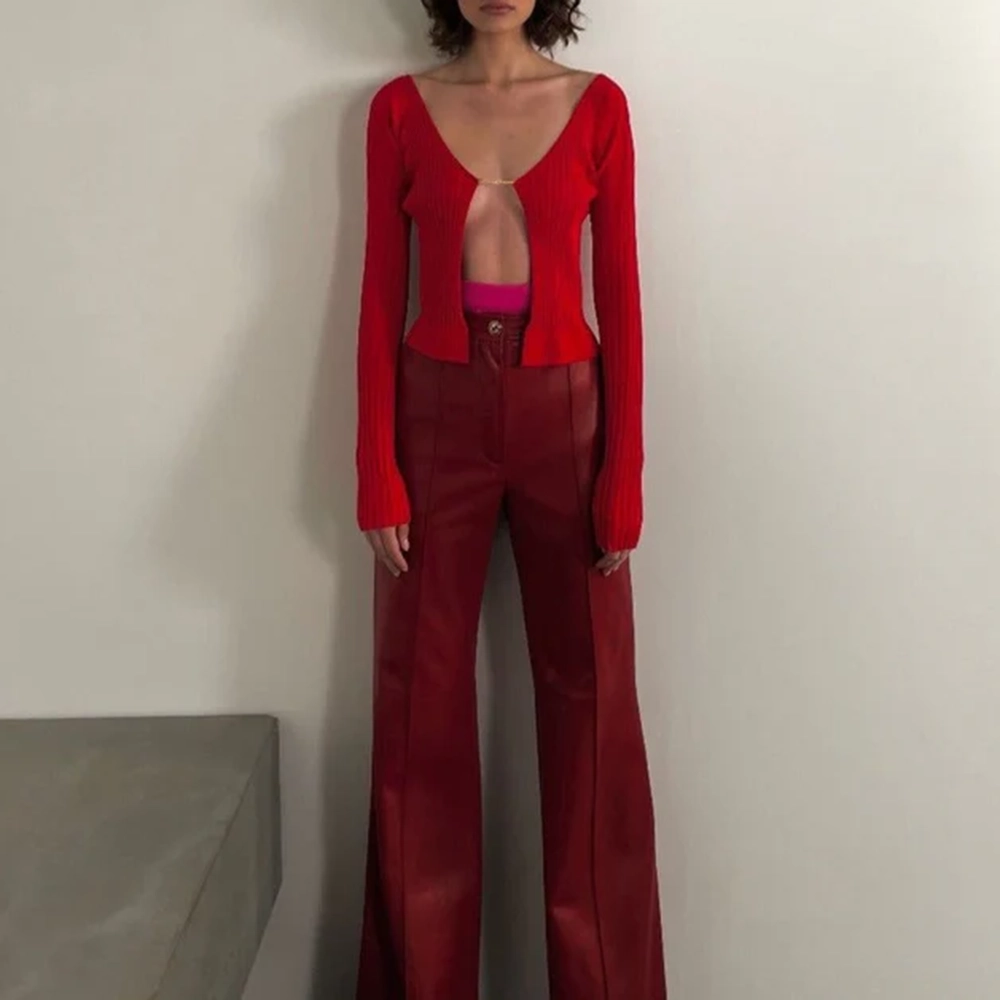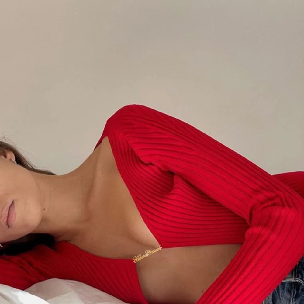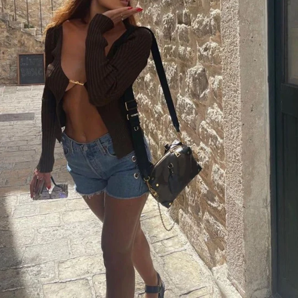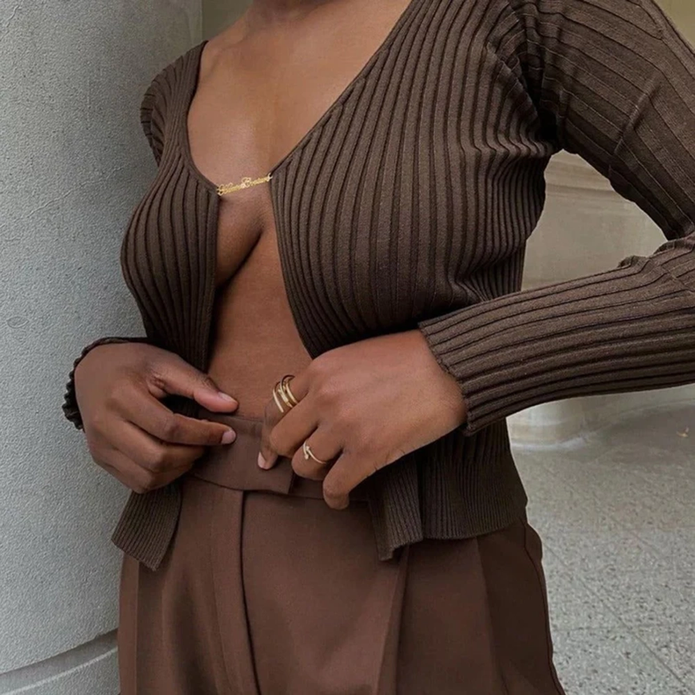 This stylish ribbed knit top features chic chain detailing, adding a touch of sophistication to any outfit. The Knit Chain Detail Top offers a flattering fit that enhances your silhouette effortlessly. Its versatile design makes it perfect for both casual and dressy occasions. Wear it with jeans for a chic everyday look or dress it up with a skirt for a night out.
