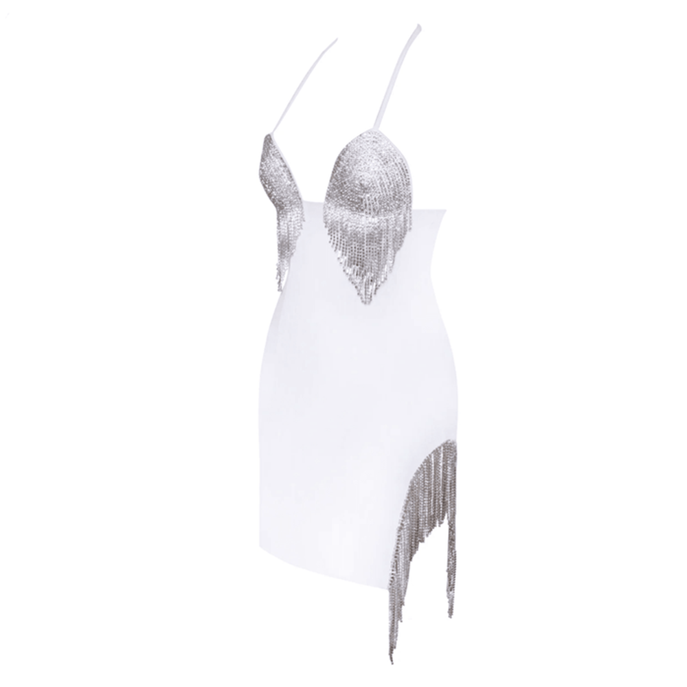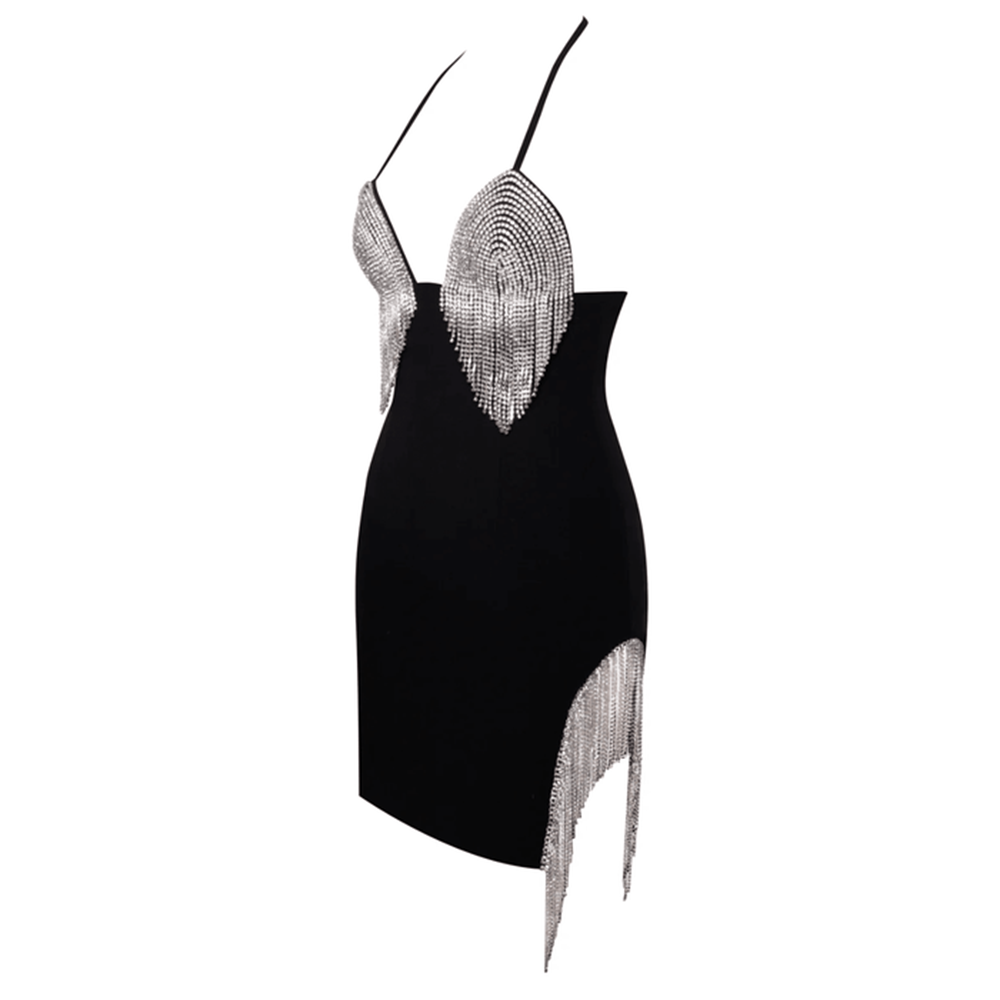 This stunning fringe mini dress features exquisite crystal detailing and a chic fringe design that catches the light beautifully. Ideal for any special event, this fringe mini dress adds a touch of glamour to your look. The intricate embellishments create a show-stopping effect, ensuring all eyes are on you. The versatile design of the fringe mini dress allows you to style it effortlessly for both formal and semi-formal occasions.