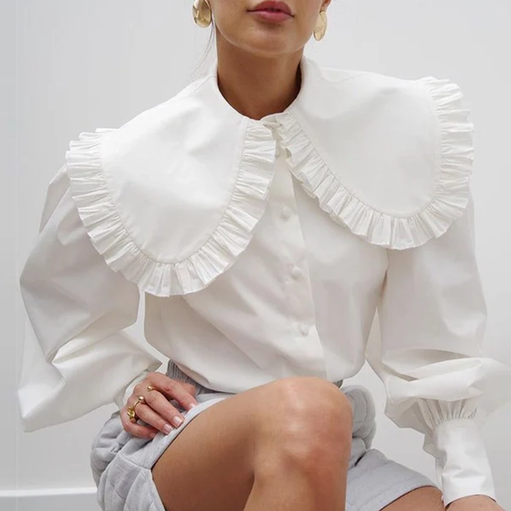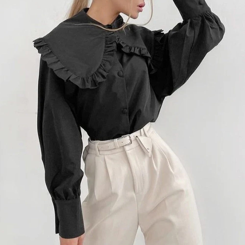 This chic blouse features a striking oversized collar and a relaxed fit, perfect for any occasion. Made from high-quality fabric, the Oversized Collar Blouse combines elegance with comfort, ensuring you look and feel great. Its versatile design makes it easy to dress up for work or keep casual for weekends. The blouse pairs beautifully with tailored trousers or jeans. This Oversized Collar Blouse is a must-have for a sophisticated, timeless look that remains in fashion. Shop now to refresh your wardrobe and enjoy effortless style with this elegant blouse!