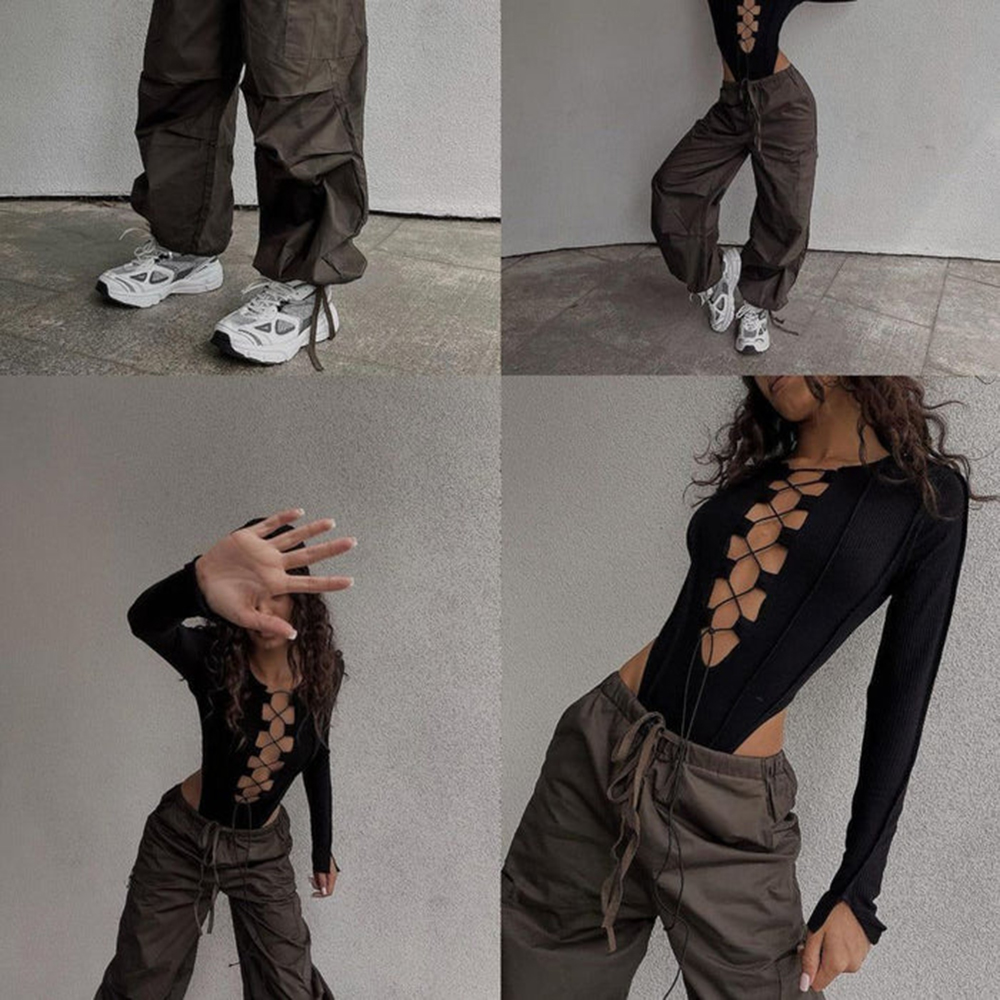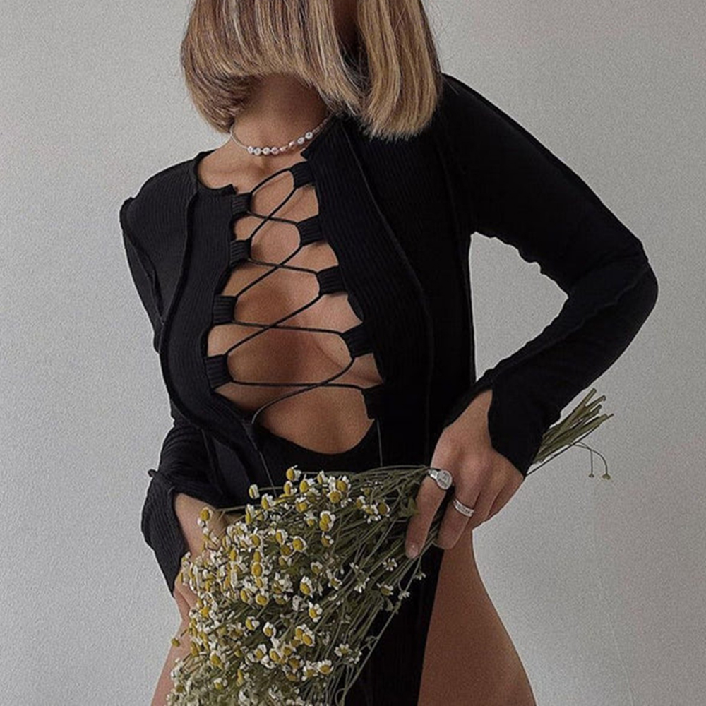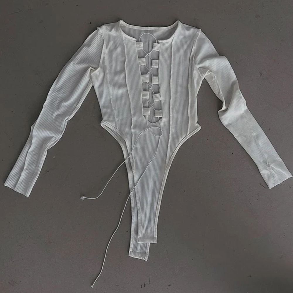 This stylish piece features a ribbed texture and a trendy lace-up design that adds a touch of sophistication. Ideal for both casual outings and special events, the Lace Up Bodysuit offers a flattering fit that enhances any outfit. The versatile design makes it easy to layer with other items, ensuring comfort and style. This bodysuit’s unique lace-up detail and ribbed fabric ensure she feels as good as she looks. Don't miss this fashionable addition to her wardrobe. Shop now and refresh her style with the Lace Up Bodysuit.