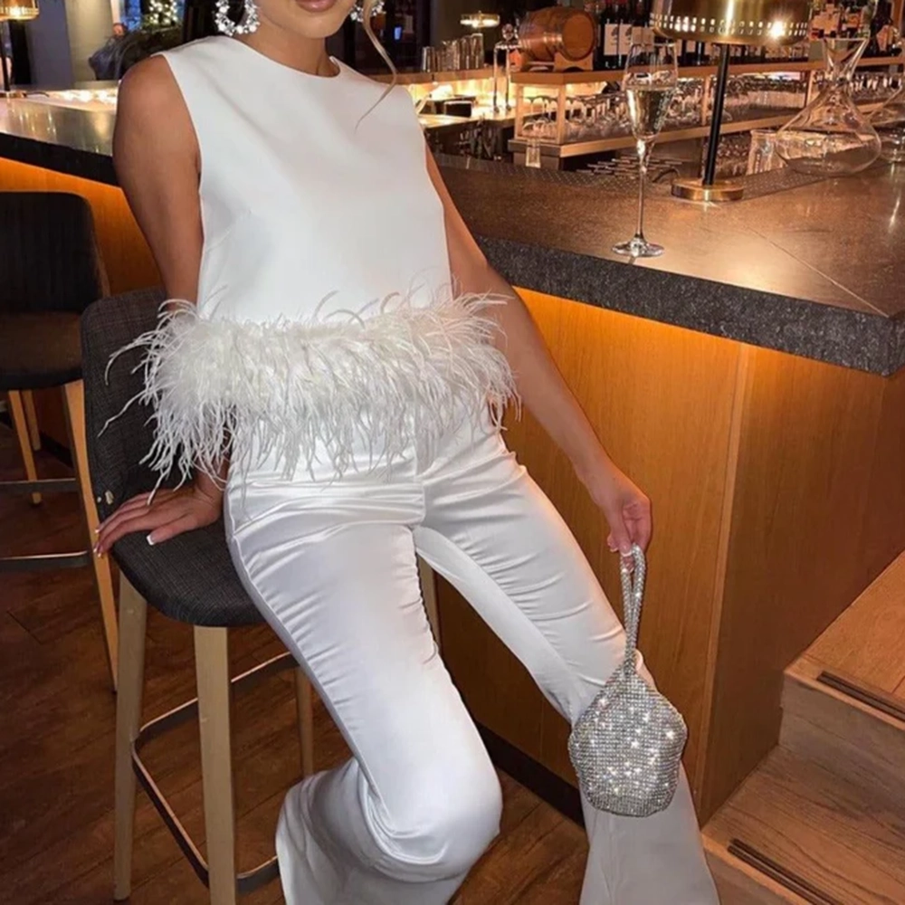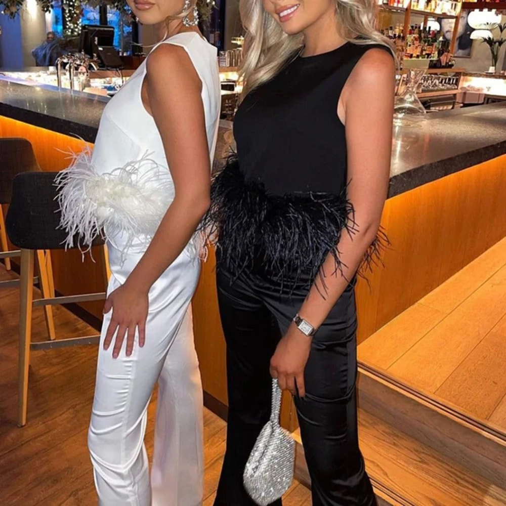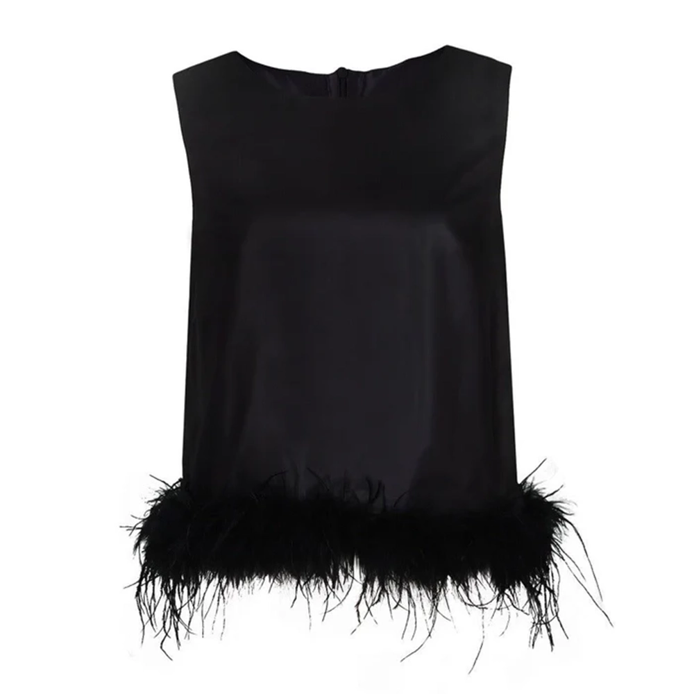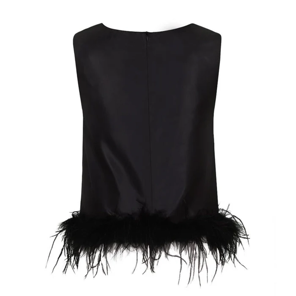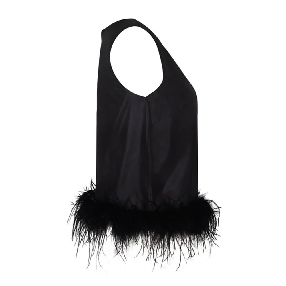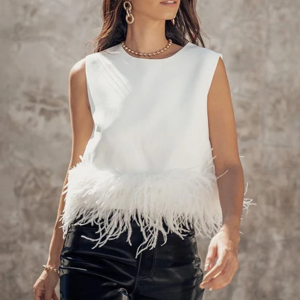 This Feather Trim Top showcases exquisite feather detailing that adds a sophisticated and glamorous touch to your outfit. Perfect for evening events or special occasions, it effortlessly blends elegance with modern chic. Crafted from premium, high-quality materials, it offers lasting comfort and durability. The versatile design makes it easy to pair with sleek pants or a tailored skirt for a polished and refined look. Ideal for those who love to make a bold statement, this Feather Trim Top is sure to turn heads. Explore and express your unique style effortlessly with this elegant piece.