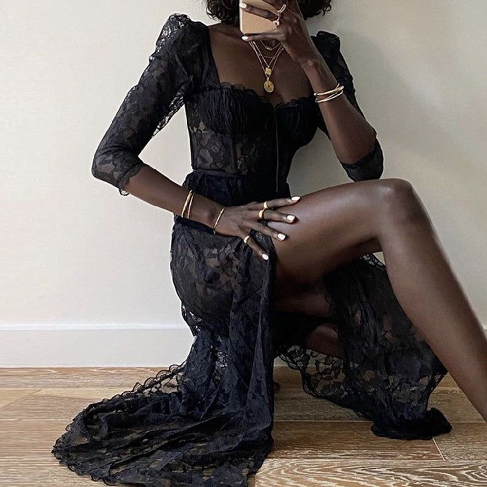 This beautiful dress features delicate lace detailing and a daring high slit that adds a bold touch. Perfect for any special occasion, it offers a blend of elegance and allure. The flowing silhouette creates a flattering fit, highlighting your natural beauty. The intricate lace design enhances the dress's sophisticated look, making it a standout choice for glamorous events. Transform your wardrobe with this timeless Lace High Slit Maxi Dress and make a memorable impression wherever you go!