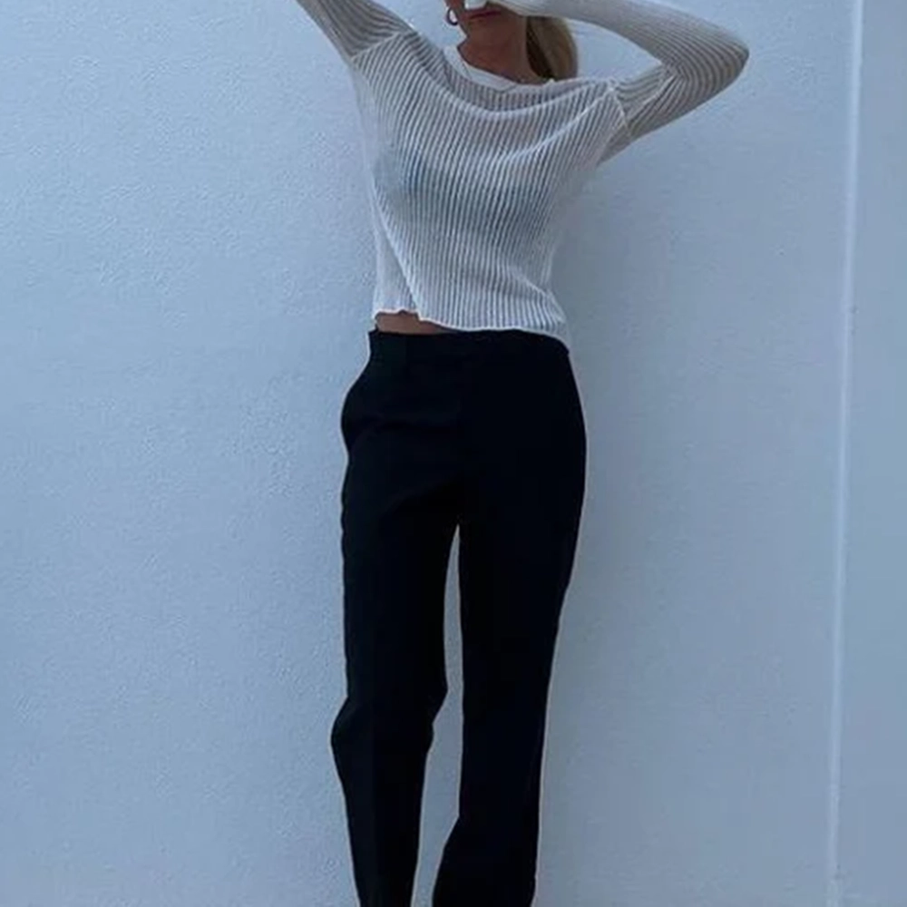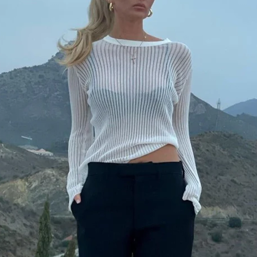 Elevate your wardrobe with the Newport Semi-Sheer Long Sleeve Rib Knit Top. This long sleeve rib knit top features a semi-sheer fabric and a stylish ribbed texture, offering both elegance and comfort. Perfect for layering or wearing alone, it adds a chic touch to any outfit. The versatile design of this long sleeve rib knit top is ideal for casual and dressy occasions. The fitted silhouette highlights your figure, while the semi-sheer material adds a hint of sophistication.